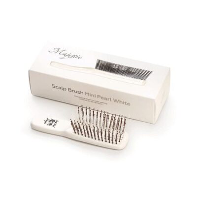 Трихологическа расческа Majestic mini Pearl White для ослабленных волос и чувствительной кожи головы.Расческа имеет 198 зубчиков с силиконовую вставку. Зубчики выполнены из гибкого износостойкого нейлона. Отсутствие микротрещин и зазубрин обеспечивает бережное расчесывание — волосы не травмируются¶и не секутся. Верхние зубчики устраняют загрязнения и старые клетки,¶а нижние мягко массажируют голову.