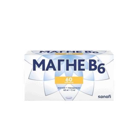 Препарат Магне В6® содержит два действующих вещества: магний (в виде лактата дигидрата) и пиридоксин (в виде гидрохлорида). Магний является жизненно важным элементом, который находится во всех тканях организма и необходим для нормального функционирования клеток, участвует в большинстве реакций обмена веществ. В частности, он участвует в регуляции передачи нервных импульсов и в сокращении мышц. Организм получает магний вместе с пищей. Недостаток магния в организме может наблюдаться при нарушении режима питания (диета), при увеличении потребности в магнии или при дисбалансе поступления, метаболизма и выведения магния (например, при повышенной физической и умственной нагрузке, стрессе, в период беременности, при применении диуретиков). Пиридоксин (витамин В6) участвует во многих метаболических процессах, в регуляции метаболизма нервной системы. Витамин В6 улучшает всасывание магния из желудочнокишечного тракта и его проникновение в клетки. Магний и пиридоксин обладают синергичными (взаимодополняющими) эффектами. Показания к применению Препарат Магне В6® принимают взрослые и дети с 6 лет и старше для восполнения дефицита магния, изолированного или связанного с другими дефицитными состояниями, сопровождаемого такими симптомами, как: повышенная раздражительность, незначительные нарушения сна; желудочно-кишечные спазмы или учащенное сердцебиение; повышенная утомляемость, боль и спазмы мышц, ощущение покалывания. Если улучшение не наступило или Вы чувствуете ухудшение, необходимо обратиться к врачу.