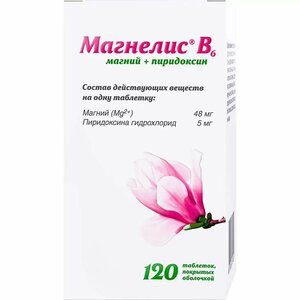 Восполняет дефицит магния. Магний является жизненно важным элементом, который находится во всех тканях ор­ганизма и необходим для нормального функционирования клеток. Участвует в большинстве реакций обмена веществ, в регуляции передачи нервных импульсов и в сокращении мышц, оказывает спазмолитическое, антиаритмическое и антиагрегантное действие. Организм получает магний вместе с пищей. Недостаток магния в организме может наблюдаться при нарушении режима питания (диета) или при увеличении потребности в магнии (при повышенной физической и умственной нагрузке, стрессе, беременности, приме­нении диуретиков). Пиридоксин (витамин В6) участвует во многих метаболических процессах, в регуля­ции метаболизма нервной системы. Витамин В6 улучшает всасывание магния из желудочно-кишечного тракта и его проникновение в клетки.
