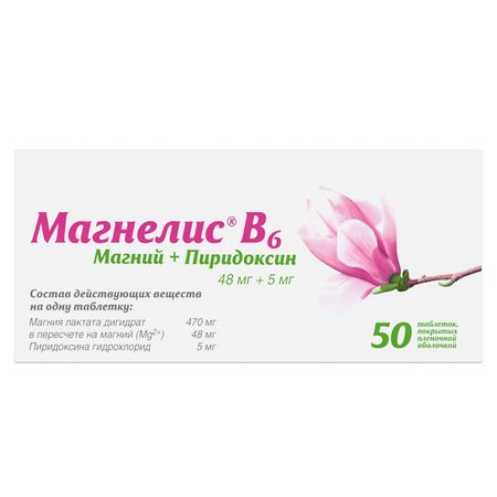 Показания Всасывание После приема препарат внутрь всасывание магния из ЖКТ составляет 50%. Выведение Выводится преимущественно почками. В почках после клубочковой фильтрации 70% присутствующего в плазме магния, его реабсорбция в почечных канальцах составляет 95-97%. Фармакологическое действие Препарат, восполняющий дефицит магния. Магний является жизненно важным элементом, который находится во всех тканях организма и необходим для нормального функционирования клеток. Участвует в большинстве реакций обмена веществ, в регуляции передачи нервных импульсов и в сокращении мышц, оказывает спазмолитическое, антиаритмическое и антиагрегантное действие. Организм получает магний вместе с пищей. Недостаток магния в организме может наблюдаться при нарушении режима питания (диета) или при увеличении потребности в магнии (при повышенной физической и умственной нагрузке, стрессе, беременности, применении диуретиков). Пиридоксин (витамин В6) участвует во многих метаболических процессах, в регуляции метаболизма нервной системы. Улучшает всасывание магния из ЖКТ и его проникновение в клетки. Содержание магния в сыворотке от 12 до 17 мг/л (0.5-0.7 ммоль/л) свидетельствует об умеренной недостаточности магния; ниже 12 мг/л (0.5 ммоль/л) — о тяжелом дефиците магния. Лекарственное взаимодействие При одновременном применении препаратов, содержащих фосфаты или соли кальция, возможно значительное уменьшение абсорбции магния из ЖКТ. Препараты магния снижают всасывание тетрациклина, рекомендуется разделять прием этих препаратов 3-часовым интервалом. Магний уменьшает действие пероральных тромболитических средств, уменьшает усвоение железа. Витамин В6 угнетает активность леводопы.