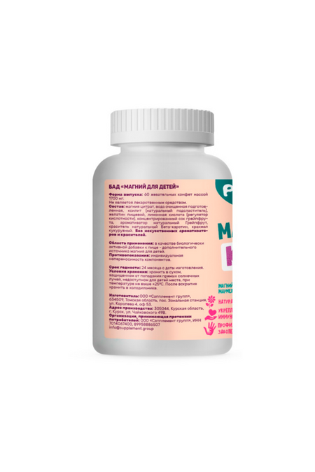 Главная » Аптека Magnesium Kids, 60 шт, пастилки Просмотров 6 Правильные продукты ООО/Сапплемент групп ООО