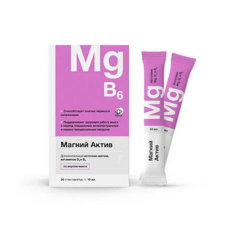 Магний Актив, 10 мл, 30 шт, жидкость в стик-пакетах манго