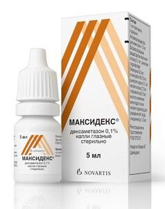 Показания к применению- аллергический блефарит;- аллергический конъюнктивит;- аллергический кератоконъюнктивит;- острый и хронический ирит;- иридоциклит;- профилактика и лечение воспалительных реакций в послеоперационном периоде;- термический и химический ожог (после полной эпителизации дефектов роговицы).Применение при беременности и кормлении грудьюПри беременности Максидекс должен назначаться только в тех случаях, когда ожидаемый терапевтический эффект превышает потенциальный риск для плода или ребенка.При необходимости назначения препарата в период лактации следует прервать грудное вскармливание.Противопоказания- вирусные, бактериальные и грибковые инфекции глаз;- заболевания роговицы в сочетании с дефектами эпителия;- повышенная чувствительность к компонентам препарата.Побочное действиеСо стороны органа зрения: при длительном местном применении ГКС могут отмечаться: повышение внутриглазного давления с возможным последующим развитием глаукомы; образование задней субкапсулярной катаракты; замедление процесса заживления ран (при заболеваниях, вызывающих истончение роговицы или склеры, возможно прободение фиброзной оболочки).После применения препаратов, содержащих ГКС, может наблюдаться развитие вторичной инфекции (в т.ч. грибковой), как следствие подавления защитной реакции организма пациента. При острых гнойных заболеваниях глаза ГКС могут маскировать или усилить имеющийся инфекционный процесс. Появление на роговице незаживающих язв после длительного лечения стероидными препаратами может свидетельствовать о развитии грибковой инвазии.СоставНа 1 мл: дексаметазон 1 мг. Вспомогательные вещества: бензалкония хлорид, гидроксипропилметилцеллюлоза, вода очищенная.Взаимодействие с другими препаратамиКлинически значимое лекарственное взаимодействие препарата Максидекс с другими лекарственными средствами не установлено.