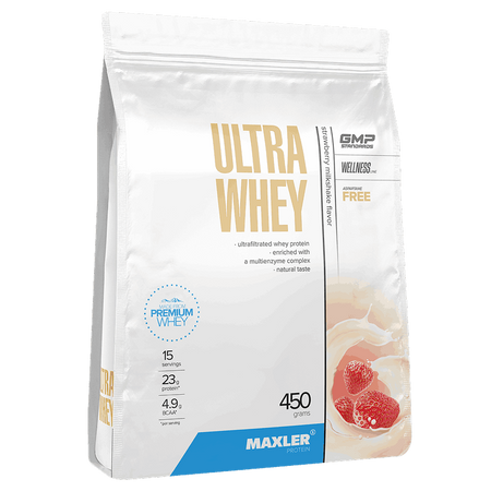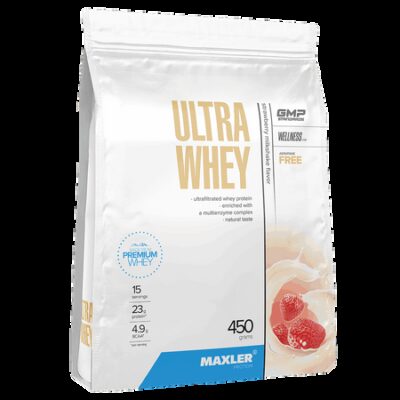 Ultra Whey — это смесь сывороточных протеинов высочайшего качества из натуральных ингредиентов, за счет чего белок быстро попадает в кровь. Мы получаем протеин из молока коров на свободном выпасе. Ultra Whey содержит 80% белка и мало жиров и углеводов, а также все 9 незаменимых аминокислот, которые способствуют росту и восстановлению мышц.Какие незаменимые аминокислоты содержит Ultra Whey, и как они влияют на организм?Изолейцин, лейцин и валин помогают восстановиться и образуют комплекс BCAA, который быстро проникает в мышечные ткани и способствует их регенерации после интенсивных тренировок.Гистидин вступает в реакцию с бета-аланином, образуя L-карнозин — важный элемент для тех, кто хочет избежать усталости во время продолжительных тренировок. Это соединение снижает уровень молочной кислоты, облегчая выполнение физических упражнений на протяжении длительного времени.Лизин — один из трёх элементов, нужных для производства коллагена, белка, который обеспечивает развитие костной и мышечной ткани, упругость кожи, крепкие волосы и ногти.Метионин играет важную роль в образовании других аминокислот и способствует расщеплению жиров.Фенилаланин, наряду с тирозином, помогает синтезировать дофамин и серотонин — гормоны счастья.Треонин, как и лизин, укрепляет иммунную систему, поскольку способствует выработке антител, благодаря чему она эффективнее борется с инфекциями.Триптофан в сочетании с протеином поддерживает энергию и активность.Аминокислоты важны для организма, но их роль становится ещё значительнее в сочетании с физической активностью, поскольку они способствуют росту мышечной массы. Ведь мышцы почти полностью состоят из белка, который, в свою очередь, состоит из аминокислот.Ultra Whey легко усваивается благодаря мультиэнзимному комплексу DigeZyme. А еще он обладает целым рядом удивительных вкусов, которые никого не оставят равнодушным. Теперь каждый протеиновый коктейль будет сладким и вкусным, но не приторным, насыщающим, но легким.