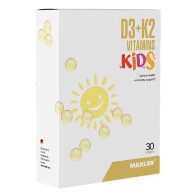 Maxler D3+K2 Vitamins Kids – это верный способ поддержать здоровье ваших детей и привить им полезные привычки.Известно, что дети привередливы в еде. И тут на помощь взрослым приходят софтгелевые капсулы D3+K2 Vitamins Kids. Эти простые капсулы содержат большое количество двух важных микроэлементов, поддерживающих общее состояние здоровья. Итак, для чего нужны эти витамины?Мышцы и кости – витамины D3 и К2 необходимы для укрепления опорно-двигательного аппарата.Иммунитет – эти микроэлементы поддерживают правильное функционирование защитных сил организма.Заживление ран – витамин К играет важную роль в свертывании крови.Здоровье сердца — комбинация двух витаминов поддерживает здоровье сердца и кровеносных сосудов.Эти два витамина необходимы для того, чтобы помочь организму усвоить другие важные минералы. Витамин D помогает усваивать фосфор и кальций. Витамин К помогает кальцию достигать костей, не накапливаясь в кровеносных сосудах.