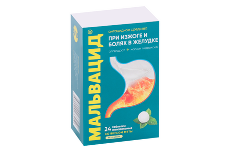 Мальвацид 400 мг+400 мг, 24 шт, таблетки жевательные