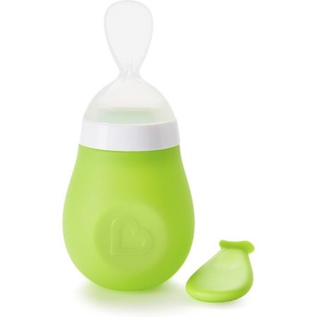 Munchkin ложка-бутылочка для первого прикорма Удобная ложка для первого прикорма Munchkin станет настоящим помощником для мамы! Ложечка-бутылочка вмещает в себя пюре, смесь и другое детское питание. Ложечка легко снимается и очищается, а благодаря гигиеничному колпачку ее удобно брать с собой на прогулки. Бутылочка легкая по весу, при кормлении очень просто сжимается. Изделие выполнено из экологичного высококачественного силикона, который не впитывает запахи. Ложечка-бутылочка прекрасно подходит для кормления дома и во время поездок. Подходит для верхней полки посудомоечной машины. Особенности: — Для детей с 4 месяцев- Объем 150 мл- Подходит для пюре, детских смесей и детского питания- Ложечка легко снимается и очищается- Эргономичная форма силиконового основания позволяет выдавить все питание до конца- Удобно брать с собой- Удобный носик для ребенка- Не содержит Бисфенол А- Можно мыть на верхней полке посудомоечной машины