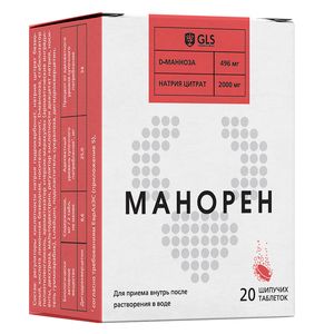 Действие Манорена определяется свойствами входящих в его состав лимонной кислоты, натрия гидрокарбоната, натрия цитрата, D-маннозы и дигидрокверцетина.Лимонная кислота, натрия гидрокарбонат и натрия цитрат растворяют и предупреждают образование мочекислых камней за счет ощелачивания мочи, а также снижают выведение кальция, улучшают растворимость кальция оксалата в моче, ингибирует образование кристаллов и, следовательно, препятствует образованию кальций-оксалатных камней.D-манноза оказывает антиадгезивное действие в отношении большинства инфекционных агентов, образующих биопленки на поверхности и внутри камней, оказывает профилактическое действие в отношение развития инфекций мочевыводящих путей. Бактерии, теряя способность прикрепляться к слизистой, выводятся с током мочи.Дигидрокверцетин — натуральный антиоксидант, получаемый из древесины лиственницы сибирской. Улучшает капиллярную микроциркуляцию органов и тканей, в том числе почек. В результате активизируются защитные механизмы и восстановления почек.Дезинтоксикационные свойства дигидрокверцетина заключаются в прямом взаимодействии с токсинами, связывании их в стабильную форму с последующим выведением из организма. За счет улучшения капиллярного кровотока ускоряется процесс выведения токсинов из межклеточного пространства.2 шипучие таблетки (суточная дозировка) содержат: лимонная кислота — 1624 мг, натрия гидрокарбонат — 2367,2 мг, натрия цитрат — 2000 мг, D-манноза — 496 мг, дигидрокверцетин 90 % — 9,6 мг.Внешний вид: белые шипучие таблетки без риски.