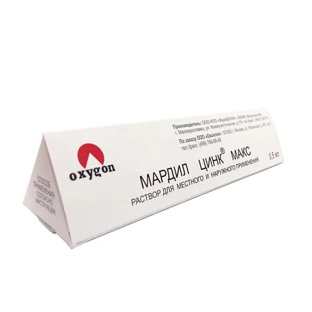 Показания При нанесении на пораженные участки кожи или слизистой оболочки Мардил Цинк® Макс не всасывается и системного воздействия на организм не оказывает. Фармакологическое действие Мардил Цинк® Макс представляет собой 50% водный раствор хлорпропионата цинка и 2-хлорпропионовой кислоты. При наружном и местном применении на пораженных участках кожи или слизистой оболочки препарат способен прерывать рост и жизнедеятельность патологически измененных клеток и тканей, в т.ч. доброкачественных новообразований кожи и слизистой оболочки, посредством антиокоагуляции, дегидратации и девитализации. При применении на пораженных участках препарат ведет к фиксации с последующей мумификацией патологически измененной ткани, с которой препарат вступает в соприкосновение. Непосредственное действие препарата выражается в обесцвечивании кожи и слизистой оболочки с появлением характерного бледно-серого оттенка. В последующем девитализированная патологическая ткань высыхает и изменяет цвет на темно-коричневый из-за мумификации. Мумифицированные струпья отделяются только после полной реэпителизации спонтанно через 2-3 недели. Заживление идет без осложнений, особенно при отсутствии вторичной инфекции, не оставляя значительных рубцов и шрамов, деформаций прилегающих тканей или нарушений функций органов. Лекарственное взаимодействие Взаимодействие препарата Мардил Цинк® Макс с другими лекарственными препаратами наружного действия не установлено.