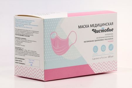 Маска Чистовье 3-х слойная на резинках розовая, 100 шт