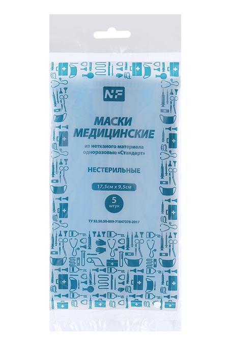 Маска Стандарт мед неткан материал однораз, 5 шт, Ньюфарм