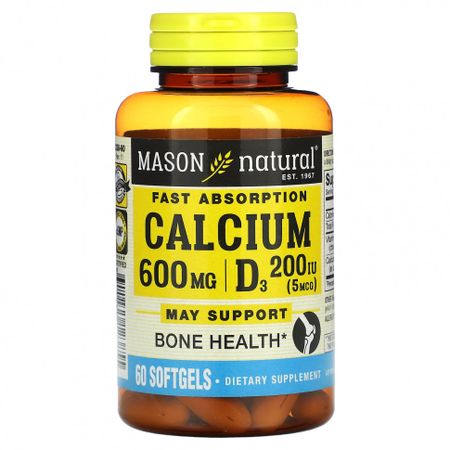 Описание Компания основана в 1967 году600 мг кальция | 200 МЕ (5 мкг) D3Может поддерживать здоровье костейПищевая добавкаПродукт прошел лабораторные испытания и имеет гарантию качества MasonПроизводится на предприятии, имеющем регистрацию текущей надлежащей производственной практики (cGMP)Без глютенаКальций с витамином D3 — популярная добавка среди людей, которые хотят поддерживать здоровье костей. Хотя многие продукты содержат кальций, прием высокоэффективных кальциевых добавок — это простой и удобный способ обеспечить ежедневное потребление кальция с пищей. Помимо здоровья костей, кальций также может поддерживать сердечный ритм, работу мышц и многое другое. Витамин D3 является важным питательным веществом для метаболизма и усвоения кальция в организме. Витамин D3 также может иметь связь с энергией и здоровой иммунной системой. Главный хирург Главный хирург рекомендует употреблять достаточное количество кальция и витамина D, чтобы предотвратить остеопороз. Рекомендации по применению Взрослым в качестве пищевой добавки принимать по одной капсуле в день, желательно во время еды. Ингредиенты Соевое масло, лецитин, пчелиный воск, желатин (бычий), глицерин, очищенная вода. Сертификация аллергенов — этот продукт содержит сою.Гарантировано не содержит добавленных молоко, яйца, рыбы, моллюски и ракообразные, древесные орехи, арахис, пшеницу. Предупреждения Если вы беременны, кормите грудью, принимаете лекарства или планируете какое-либо заболевание, проконсультируйтесь с врачом перед использованием. При возникновении любых побочных реакций следует прекратить прием и обратиться к врачу.Хранить в недоступном для детей месте. Защита от вскрытия. Не используйте продукт, если защитная пленка повреждена. Хранить в сухом месте при контролируемой температуре 20–25 ° C (68–77 ° F). Пищевая ценностьРазмер порции: 1 капсула Количество в 1 порции% ОТ СУТОЧНОЙ НОРМЫКалории5 Всего жиров
