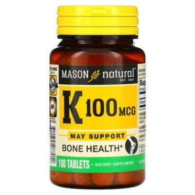 Пищевая ценностьРазмер порции: 1 таблетка Количество в 1 порции% от суточной нормыВитамин K (фитонадион)100 мкг80% Компания основана в 1967 годуМожет поддерживать здоровье костейПищевая добавкаНе содержит соиПродукт прошел лабораторные испытания и имеет гарантию качества MasonПроизводится в соответствии со стандартом качества cGMP