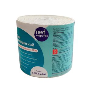 Медреспонс Бинт медицинский эластичный компрессионный с застежкой высокой растяжимости 5 м х 8 см