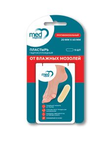 Medresponse Пластырь противомозольный гидроколлоидный от влажных мозолей, размер 20 мм х 60 мм, набор 5 шт.Гидроколлоидные пластыри предназначены для эффективного и безболезненного лечения влажных мозолей.Пластыри надёжно фиксируются на коже, впитывают лишнюю влагу и создают оптимальные условия для быстрого заживления.Пластыри позволяют мозоли дышать , смягчают давление и защищают от попадания бактерий.Принцип действия:Специальный гидроколлоидный слой впитывает лишнюю влагу из мозоли.При контакте с мозолью образуется гель, который обеспечивает благоприятную среду для быстрого заживления.Чёткая фиксация пластыря поддерживает эту среду, способствуя эффективному лечению.Преимущества:Защищает поражённое место при ходьбе.Моментально облегчает боль.Держится до 48 часов, даже при контакте с водой.Видимый результат за 1 день.