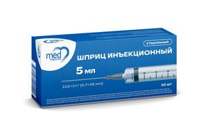 Medresponse Инъекционный шприц 22G (0,7х38) 5 МЛ в упаковке 10 шт ГОСТ ISO 7886-1-2011Шприц разработан для обеспечения максимальной точности и комфорта при введении лекарственных препаратов.Идеально подходит для болюсных инъекций и отличается следующими преимуществами:Оптимальный объем: 5 мл — универсальный объем для большинства внутримышечных и подкожных инъекций.Игла с трехгранной заточкой: Обеспечивает атравматичное проникновение в ткани, снижая болевые ощущения пациента.Надежное соединение Луер: Гарантирует герметичность соединения иглы и шприца, исключая утечку препарата.Четкая шкала: Контрастная, нестираемая шкала на корпусе шприца позволяет точно контролировать дозировку вводимого лекарства, что особенно важно при работе с препаратами, требующими высокой точности.Плавное введение: Поршень с силиконовой смазкой обеспечивает плавное и равномерное движение, что позволяет точно дозировать лекарство и повышает комфорт пациента.Преимущества:Удобство использования — эргономичный дизайн и четкая шкала облегчают работу и снижают риск ошибок при дозировании.Безопасность — надежное соединение и качественные материалы обеспечивают безопасность как для медицинского работника, так и для пациента.Универсальность — подходит для широкого спектра лекарственных препаратов и видов инъекций.
