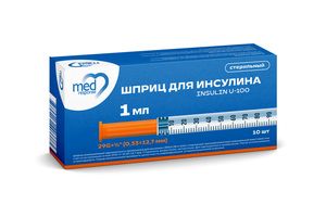 Medresponse Шприц стерильный инъекционный с иглой для инсулина 1 мл 29G в упаковке 10 шт — высококачественное медицинское изделие, предназначенное для точного и безопасного введения инсулина. Шприц деально подходит для пациентов с диабетом, обеспечивая простоту и удобство в использовании.Особенности:Игла с трехгранной заточкой — обеспечивает легкое и безболезненное введение инсулина, минимизируя дискомфорт для пациента.Несмываемая шкала — шприц имеет четкую и контрастную шкалу, делящуюся на 1 мл/100 единиц, что позволяет легко и точно контролировать дозировку инсулина.Интегрированная игла и отсутствие мертвого пространства — конструкция гарантирует введение полной дозы инсулина без потерь, что особенно важно для контроля уровня сахара в крови.Точность дозировки — нестираемая шкала шприца обеспечивает высокую точность при измерении и введении инсулина, что критически важно для управления диабетом.Технические характеристики:Размер иглы — G29Диаметр иглы — 0,33 ммНоминальный объем — 1 млСтерильный — каждая единица шприца проходит строгую стерилизацию, что гарантирует безопасность использования.Для однократного применения — шприц предназначен только для одноразового использования, что предотвращает риск инфекций и обеспечивает высокую степень гигиеничности.Индивидуальная герметичная упаковка — каждый шприц упакован в герметичную упаковку, что обеспечивает его сохранность и стерильность до момента использования.Инъекционный шприц с иглой для инсулина 1 мл 29G U-100 — надежный помощник для пациентов, нуждающихся в регулярном введении инсулина, а также для медицинских работников, обеспечивающих качественный уход за пациентами с диабетом.