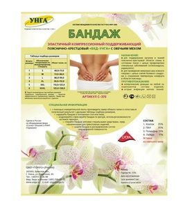 Бренд Унга — ведущий бренд компрессионного трикотажа, послеоперационных и лечебных бандажей, лечебного белья, бинтов эластичных и спортивных изделий.Применяется для профилактики спинальных заболеваний (остеохондроз, радикулит и др.), для снятия болевого синдрома в поясничной области. Бандаж равномерно перераспределяет нагрузку в поясничном отделе позвоночника и благодаря меховой вставке препятствует переохлаждению. Вставка из дублированного овечьего меха не только сохраняет тепло, но и осуществляет массаж кожи, тем самым снижая болевые ощущения. Бандаж разъемный, снабжен застежкой-липучкой.Дублированный овечий мех в составеК трикотажной основе по специальной технологии крепится непряденая овечья шерсть, объем полученного шерстяного слоя имеет свойства натурального меха. Такой мех хорошо сохраняет тепло, пропускает воздух, не вызывает аллергии и не деформируется после стирки. Это позволяет применять его даже в медицинских изделиях.