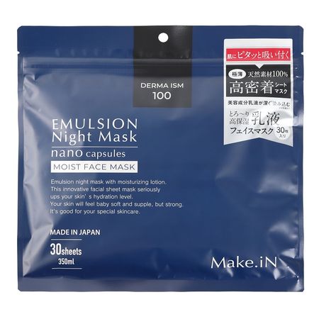 Ночная увлажняющая маска-эмульсия для лица на тканевой основе. Глубоко увлажняет, выравнивает тон, разглаживает морщины. Снимет накопленную дневную усталость и сделает кожу отдохнувшей и сияющей всего за 10 минут! Содержит церамиды, натуральные растительные экстракты и глицирризиновую кислоту 2K. Благодаря густой, насыщенной сыворотке интенсивно ухаживает за кожей, делая ее мягкой и упругой. Основа маски плотно прилегает к коже, обеспечивая превосходное увлажнение и лифтинг эффект. • Признана одной из лучших масок бренда Make.iN, которая всего за 10 минут снимет накопленную дневную усталость! • Маска пропитана густой и насыщенной косметическими ингредиентами сывороткой, которая интенсивно увлажняет кожу, делая ее мягкой и упругой. • Содержит церамиды, экстракты растений и глицирризиновую кислоту 2K. Оказывает успокаивающее и увлажняющее действие, улучшает цвет лица. • Активные компоненты заключены в нанокапсулы из гидролецитина, которые глубоко проникают в подкожный слой и эффективно увлажняют. • Основа маски изготовлена в Японии. Маска плотно прилегает к коже, обеспечивая превосходное увлажнение и лифтинг эффект.