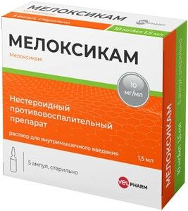 Главная » Аптека Мелоксикам Велфарм раствор для внутримышечного введения 10 мг/мл 1,5 мл 5 шт Просмотров 6 Прозрачный или слегка опалесцирующий раствор желтого с зеленоватым оттенком цвета. Велфарм