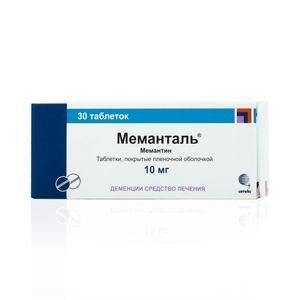 Показания к применениюДеменция средней и тяжелой степени выраженности при болезни Альцгеймера.Применение при беременности и кормлении грудьюВлияние на способность управлять транспортными средствами и работать с механизмами. У пациентов с болезнью Альцгеймера на стадии умеренной или тяжелой деменции обычно нарушена способность к вождению автотранспорта и управлению сложными механизмами. Кроме того, мемантин может вызывать изменение скорости реакции, поэтому пациентам необходимо воздерживаться от управления автотранспортом или работы со сложными механизмами.Противопоказанияповышенная чувствительность к препарату;тяжелые нарушения функции почек (Cl креатинина <5–29 мл/мин);тяжелая печеночная недостаточность;непереносимость лактозы, дефицит лактазы Лаппа или глюкозо-галактозная мальабсорбция (препарат содержит лактозы моногидрат);беременность;грудное вскармливание;детский возраст до 18 лет (эффективность и безопасность не установлены).С осторожностью: тиреотоксикоз; эпилепсия; судороги (в т.ч. в анамнезе); одновременное применение других антагонистов NMDA-рецепторов (амантадин, кетамин, декстрометорфан); наличие факторов, повышающих рН мочи (резкая смена диеты, прием больших количеств щелочных желудочных буферов); тяжелые инфекции мочевыводящих путей; инфаркт миокарда в анамнезе; сердечная недостаточность III–IV функционального класса (по классификации NYHA); неконтролируемая артериальная гипертензия; почечная и печеночная недостаточность.Побочное действиеУсиливает действие препаратов леводопы, антагонистов дофаминовых рецепторов, м-холиноблокаторов.Уменьшает действие барбитуратов и нейролептиков.Изменяет (усиливает или уменьшает) действие дантролена или баклофена, поэтому дозы препаратов следует подбирать индивидуально.Следует избегать одновременного приема с амантадином, кетамином, фенитоином и декстрометорфаном из-за повышения риска развития психоза.Возможно повышение в плазме крови концентрации циметидина, ранитидина, прокаинамида, хинидина, хинина и никотина.Возможно снижение уровня гидрохлоротиазида. Мемантин способен увеличивать экскрецию гидрохлоротиазида.Возможно повышение MHO у пациентов, принимающих пероральные антикоагулянты (варфарин).Одновременное применение с антидепрессантами, СИОЗС и ингибиторами МАО требует тщательного наблюдения за пациентами.СоставТаблетки, покрытые пленочной оболочкой, состав (1 табл.):активное вещество:мемантина гидрохлорид — 10 мгвспомогательные веществаядро: лактозы моногидрат — 149,75 мг; МКЦ — 27,1 мг; тальк — 11,15 мг; кремния диоксид коллоидный — 1,25 мг; магния стеарат — 0,75 мгоболочка пленочная: Opadry белый (лактозы моногидрат — 2,16 мг, гипромеллоза — 1,68 мг, титана диоксид — 1,56 мг, макрогол 4000 — 0,6 мг) — 6 мгВзаимодействие с другими препаратамиМеры предосторожности