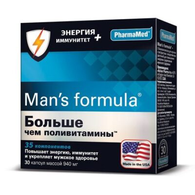 Man’s Formula Больше чем поливитамины Энергия+Иммунитет №60-натуральный биокомплекс для повышения, иммунитета и укрепления мужского здоровья.Сокращает период восстановления после перенесенных ОРВИ, улучшает метаболизм мужского организма, поддерживает уровень тестостерона, повышает жизненный тонус, работоспособность и выносливость способствует улучшению функционального состояния предстательной железы. Способ применения и дозы: принимать по 1 капсуле 2 раза в день во время еды.