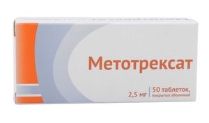 Показания к применениюОстрый лимфолейкоз, трофобластическая болезнь, рак кожи, рак шейки матки и вульвы, рак пищевода, плоскоклеточный рак головы и шеи, рак почечной лоханки и мочеточников, остеогенная и мягкоклеточная саркома, саркома Юинга, рак легкого, рак молочной железы, герминогенные опухоли яичка и яичников, рак печени, рак почки, ретинобластома, медуллобластома, рак полового члена, лимфогранулематоз.;Тяжелые формы псориаза (в случае неэффективности стандартной терапии).;Тяжелая форма ревматоидного артрита (в случае неэффективности стандартной терапии).Применение при беременности и кормлении грудьюМетотрексат противопоказан к применению при беременности. При необходимости применения в период лактации следует прекратить грудное вскармливание.;Женщины детородного возраста должны использовать надежные методы контрацепции во время применения метотрексата.;В экспериментальных исследованиях установлено эмбриотоксическое и тератогенное действие метотрексата.ПротивопоказанияВыраженные нарушения функции печени и/или почек, лейкопения, тромбоцитопения, беременность. Метотрексат не следует применять при иммунодефицитных состояниях.Побочное действиеСо стороны пищеварительной системы: возможны язвенный стоматит, анорексия, гингивит, фарингит, тошнота; редко — диарея, мелена, энтерит, панкреатит; в отдельных случаях (при длительном ежедневном применении) — некроз печени, цирроз, жировая атрофия, перипортальный фиброз печени.;Со стороны системы кроветворения: лейкопения, анемия, тромбоцитопения.;Со стороны ЦНС: чувство усталости, головокружение; редко — головная боль, афазия, сонливость, судороги.;Со стороны репродуктивной системы: нарушения оогенеза и сперматогенеза, олигоспермия, нарушения менструального цикла, снижение либидо, импотенция.;Со стороны мочевыделительной системы: гематурия, цистит, выраженные нарушения функции почек.;Аллергические реакции: озноб, снижение сопротивляемости к инфекции; редко — крапивница, токсический эпидермальный некролиз, синдром Стивенса-Джонсона.;Дерматологические реакции: кожная сыпь, фотосенсибилизация, нарушения пигментации, телеангиэктазии, акне, фурункулез.СоставМетотрексат 2.5 мг