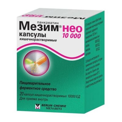 Показания Желатиновые капсулы препарата Мезим® нео 10000 быстро растворяются в желудке, высвобождая минитаблетки, покрытые кишечнорастворимой (кислотоустойчивой) оболочкой. Таким образом, ферменты остаются защищенными от инактивации в кислой среде желудка. Форма выпуска препарата обеспечивает перемешивание мини-таблеток с кишечным содержимым и равномерное распределение ферментов. Растворение оболочки мини-таблеток и активация ферментов происходит при нейтральной или слабощелочной рН в тонкой кишке. Панкреатин не всасывается в ЖКТ, выводится с каловыми массами. Фармакологическое действие Действующим веществом препарата Мезим® нео 10000 является панкреатин, представляющий собой порошок из поджелудочных желез свиней. Ферменты, входящие в состав панкреатина, способствуют расщеплению жиров, углеводов и белков, поступающих с пищей. Панкреатин, оказывая протеолитическое, амилолитическое и липолитическое действие, компенсирует ферментативную недостаточность поджелудочной железы, улучшает функциональное состояние ЖКТ, нормализует процессы пищеварения. Лекарственное взаимодействие Исследований по взаимодействию не проводилось.