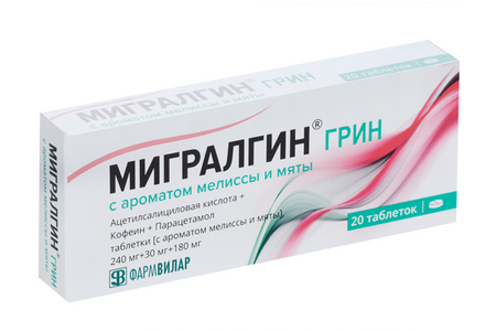 Главная » Аптека Мигралгин Грин 240 мг+30 мг+180 мг, 20 шт, таблетки с ароматом мелиссы и мяты Просмотров 9 ФармВилар НПО