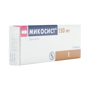 Показания к применениюКриптококкоз, включая криптококковый менингит и другие локализации данной инфекции (в т. ч. легкие, кожа), как у больных с нормальным иммунным ответом так и у больных с различными формами иммуносупрессии (в т. ч. у больных СПИД, при трансплантации органов). препарат можно использовать для профилактики криптококковой инфекции у больных СПИД, генерализованный кандидоз, включая кандидемию, диссеминированный кандидоз и другие формы инвазивной кандидозной инфекции (в т. ч. инфекции брюшины, эндокарда, глаз, дыхательных и мочевых путей). Лечение может проводиться у больных со злокачественными новообразованиями, больных отделений интенсивной терапии, больных, получающих цитотоксические или иммуносупрессивные средства, а также при наличии других факторов, предрасполагающих к развитию кандидоза, кандидоз слизистых оболочек, в т. ч. полости рта и глотки (включая атрофический кандидоз полости рта, связанный с ношением зубных протезов), пищевода, неинвазивные бронхолегочные инфекции, кандидурия, кандидозы кожи. профилактика рецидива орофарингеального кандидоза у больных СПИД, генитальный кандидоз: вагинальный кандидоз (острый и хронический рецидивирующий), профилактическое применение с целью уменьшения частоты рецидивов вагинального кандидоза (3 и более эпизодов в год). кандидозный баланит, профилактика грибковых инфекций у больных со злокачественными новообразованиями, которые предрасположены к таким инфекциям в результате цитотоксической химиотерапии или лучевой терапии, микозы кожи, включая микозы стоп, тела, паховой области, отрубевидный лишай, онихомикозы и кандидоз кожи, глубокие эндемические микозы, кокцидиоидомикоз, паракокцидиоидомикоз, споротрихоз и гистоплазмоз у больных с нормальным иммунитетом.Применение при беременности и кормлении грудьюПеред началом приема любого препарата посоветуйтесь с врачом или провизором. Капсулы Микосист беременным женщинам можно давать только при наличии тяжелых грибковых заражений, которые требуют немедленного лечения. Во время беременности, капсулы моно применять только по предписанию врача, в определенной врачом дозе и продолжительности терапии. Флуконазол проходит в материнское молоко, поэтому при необходимости терапии Микосистом во время кормления грудью, кормление надо приостановить.ПротивопоказанияОдновременный прием терфенадина или астемизола и других препаратов, удлиняющих интервал QT, детский возраст до 6 месяцев (для приема внутрь), повышенная чувствительность к препарату или близким по структуре азольным соединениям.СоставДействующее вещество: Флуконазол. Концентрация действующего вещества (мг): 150 мг