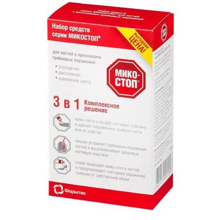 Главная » Аптека МИКОСТОП крем-паста для ногтей 20 мл + лосьон д/ногтей 15 мл + спрей д/ног 150 мл Просмотров 7 МИКОСТОП крем-паста для ногтей 20 мл + лосьон д/ногтей 15 мл + спрей д/ног 150 мл по цене от 800 р. в аптеках МАКСАВИТ Зеленая Дубрава