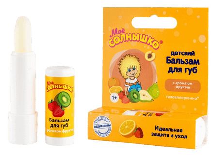 Универсальное профилактическое средство для ежедневного ухода за нежной кожей губ ребенка. Бальзам для губ «Мое солнышко» — идеальное средство как для детей, так и для взрослых.Эффективный и гипоаллергенный состав бальзама прекрасно смягчает нежную кожу губ и тщательно за ней ухаживает. Даже в непогоду кожа губ остаётся здоровой, мягкой и нежной. Приятный фруктовый аромат понравится и малышу и взрослому.Клинически проверено и рекомендовано ФГУ «МНИИ Педиатрии и детской хирургии Минздрава России».
