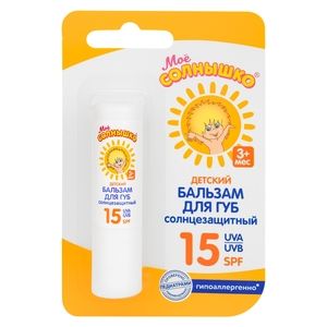 Бальзам для губ Мое солнышко специально разработан для надежной защиты от солнечных ожогов нежной кожи губ малыша, а также чувствительных участков кожи, подвергающихся активному воздействию солнца — Т-зона (носик и лоб), ушки ребенка. Содержит безопасные для детской кожи фильтры, которые обеспечивают длительную защиту от широкого спектра UVA/UVB излучения. Благодаря витамину Е, экстракту ромашки, маслу ши и активному увлажняющему комплексу, бальзам интенсивно смягчает кожу, предохраняет ее от пересушивания, воспаления и препятствует потере влаги. Обладает водостойкостью и защищает даже во время купания. Гипоаллергенно. Подходит для детей с 3 месяцев.