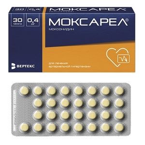 Показания к применению— артериальная гипертензия.Применение при беременности и кормлении грудьюКлинические данные о лечении беременных препаратом Моксарел; отсутствуют.;Назначать Моксарел; при беременности следует с осторожностью только после тщательной оценки соотношения риска и пользы, когда польза для матери превышает потенциальный риск для плода.;Моксонидин проникает в грудное молоко. Кормящим женщинам в период лечения рекомендуется прекратить грудное вскармливание или отменить препарат.Противопоказания— выраженные нарушения ритма сердца; — СССУ; — AV-блокада II и III степени; — выраженная брадикардия (ЧСС менее 50 уд./мин); — острая и хроническая сердечная недостаточность (III-IV функциональный класс по классификации NYHA); — одновременное применение с трициклическими антидепрессантами; — почечная недостаточность тяжелой степени (КК менее 30 мл/мин), включая пациентов, находящихся на гемодиализе; — возраст старше 75 лет; — возраст до 18 лет (эффективность и безопасность моксонидина не установлены); — период лактации (грудного вскармливания); — непереносимость лактозы, дефицит лактазы, глюкозо-галактозная мальабсорбция; — повышенная чувствительность к активному веществу, другим компонентам препарата.;С осторожностью;— нарушения функции почек (КК более 30 мл/мин); — печеночная недостаточность тяжелой степени (более 9 баллов по классификации Чайлд-Пью); — AV-блокада I степени; — тяжелые заболевания коронарных сосудов; — тяжелая ИБС или нестабильная стенокардия (опыт применения недостаточен); — хроническая сердечная недостаточность.Побочное действиеЧастота развития побочных эффектов, приведенных ниже, определялась соответственно следующему: очень часто (≥10%); часто (≥1%, но <10%); нечасто (≥0.1%, но <1%); редко (≥ 0.01%, но <0.1%); очень редко (<0.01%, включая единичные случаи).;Со стороны ЦНС: часто — головная боль, головокружение (вертиго), сонливость; нечасто — обморок.;Нарушения психики: часто — бессонница; нечасто — нервозность.;Со стороны органа слуха и лабиринтные нарушения: нечасто — звон в ушах.;Со стороны сердечно-сосудистой системы: нечасто — выраженное снижение АД, ортостатическая гипотензия, брадикардия.;Со стороны ЖКТ: очень часто — сухость слизистой оболочки полости рта; часто — тошнота, диарея, рвота, диспепсия.;Со стороны кожи и подкожных тканей: часто — кожная сыпь, зуд; нечасто — ангионевротический отек.;Со стороны скелетно-мышечной системы и соединительной ткани: часто — боль в спине; нечасто — боль в области шеи.;Общие расстройства и нарушения в месте введения: часто — астения; нечасто — периферические отеки.
