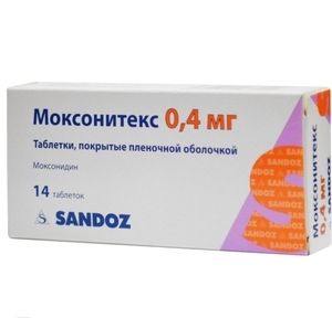 Показания к применениюАртериальная гипертензия.Применение при беременности и кормлении грудьюДостоверных исследований применения моксонидина у беременных не проводилось. Исследования на животных показали эмбриотоксический эффект. Клинических данных о негативном влиянии на течение беременности нет. Однако следует применять препарат Моксонитекс беременным только в том случае, если предполагаемая польза для матери превышает потенциальный риск для плода.;Моксонидин выделяется с грудным молоком, женщинам в период лечения рекомендуется прекратить грудное вскармливание или отменить препарат.Противопоказанияангионевротический отек в анамнезе; СССУ или синоатриальная блокада; AV-блокада II и III степени; выраженная брадикардия (менее 50 уд./мин в покое); выраженные нарушения ритма сердца; хроническая сердечная недостаточность (III-IV функциональный класс по классификации NYHA); нестабильная стенокардия; выраженная печеночная недостаточность; почечная недостаточность тяжелой степени (КК менее 30 мл/мин, содержание сывороточного креатинина — более 160 мкмоль/л); возраст до 18 лет; период лактации; непереносимость галактозы, дефицит лактазы или синдром мальабсорбции глюкозы-галактозы; повышенная чувствительность к моксонидину или любому другому компоненту препарата.;С осторожностью и под контролем врача следует применять препарат у пациентов после недавно перенесенного инфаркта миокарда или при нарушениях периферического кровообращения (перемежающаяся хромота, синдром Рейно); у пациентов с умеренно выраженными нарушениями функции почек (КК 30-60 мл/мин; содержание сывороточного креатинина 105-160 мкмоль/л), с нарушениями функции печени, при беременности, депрессии, глаукоме, эпилепсии, болезни Паркинсона.Побочное действиеСо стороны сердечно-сосудистой системы: редко — симптомы вазодилатации; иногда — выраженное снижение АД, синкопальные состояния, синдром Рейно, периферические отеки.; Со стороны ЦНС: часто — головокружение, головная боль, сонливость, повышенная утомляемость, нарушение сна; иногда — парестезии, депрессия, тревожность.; Со стороны пищеварительной системы: часто — сухость слизистой оболочки полости рта, тошнота, анорексия, запор.; Со стороны мочеполовой системы: иногда — задержка или недержание мочи, импотенция и/или снижение либидо.; Со стороны органа чувств: иногда — сухость глаз, вызывающая зуд или чувство жжения.; Аллергические реакции: иногда — крапивница, кожный зуд, экзантема, ангионевротический отек.; Прочие: иногда — гинекомастия, болезненность околоушных желез.СоставДействующее вещество: Моксонидин (Moxonidine);Концентрация действующего вещества (мг): 0,4
