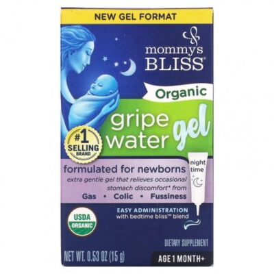 (Foeniculum vulgare)2 mg †14 mg † †Daily Value not established. Бренд № 1Разработано для новорожденныхЭкстра нежный гель, снимающий эпизодический дискомфорт в желудкеГазы — Колики — СуетливостьСертификат USDA OrganicЛегкое применение благодаря смеси Bedtime Bliss ™Пищевая добавкаФонд Mommy’s BlissБлаженство для каждого ребенкаКомпания находится в собственности и под управлением женщинСодержимое сертифицировано NSFБез ГМООрганическое происхождение подтверждено Международным комитетом по гарантии качестваСоздано мамами для мамНаша семейная компания была основана моей мамой, медсестрой и сертифицированной акушеркой, воспитавшей троих детей. Движимая состраданием к другим мамам, она создала Mommy’s Bliss, чтобы безопасно и естественным образом вернуть здоровье семьям. Будучи мамой, я понимаю, насколько важно выбирать продукты, эффективно и безопасно работающие, заслуживающие доверия продукты, которые могут сделать моих малышей счастливыми!Ясмин Кадарали — мама, дочь & Генеральный директорOrganic Gripe Water Gel Night Time использует проверенную и надежную жидкую формулу в новом, более простом для применения формате. Этот гель подходит для детей и помогает облегчить газообразование и дискомфорт в желудке, часто связанный с коликами и беспокойством, способствуя спокойному сну.Фенхель & экстракты имбиря100% вегетарианский продукт & веганскийЛегко применятьБез спирта и парабеновРомашки & экстракты мелиссыНе содержит искусственных ароматизаторов и красителей