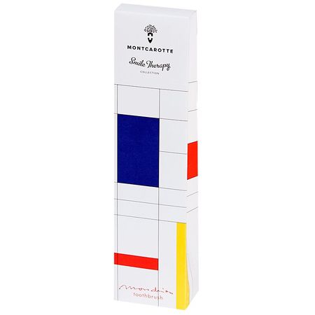 MontCarotte Smile Theraphy – это полноценная линия по уходу за полостью рта класса «премиум». Команда британской марки MontCarotte — это ведущие мировые фармакологи, ученые, врачи, маркетологи и дизайнеры – они подошли к созданию своей линейки продуктов по уходу за полостью рта с косметической стороны: зубные пасты у них называются кремами, пилингами и масками, а зубные щетки – кистями. Каждая из зубных кистей от MontCarotte – это настоящее произведение искусства, сочетающее в себе изящность, эргономичность и научный подход. Высокотехнологичная щетина кисти для зубов Мондриан из коллекции Montcarotte ABC сделана из полиамида – он не впитывает влагу и сохраняет форму в два раза дольше полиэстера. Такая щетина поможет добиться максимально гладкой поверхности эмали и желаемой белизны. Идеально закругленные на конце волокна щетины не травмируют десна и бережно полируют поверхность эмали. Ручка щетки сделана из высокопрочного пластика, имеет форму художественной кисти, что также позволяет добиться максимально правильной техники чистки зубов. Художник показывает нам, что пространство простых форм может быть непростым и загадочным и являться бесконечностью для одного и границами реальности для иного. Мы уверены, что зубная кисть от MontCarotte станет Вашим новым изысканным аксессуаром и ярким тоном в гамме вашего настроения, делая Вашу улыбку белее и ярче!