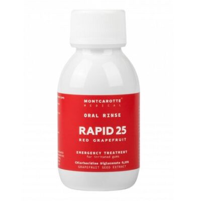 Преимущества:Ополаскиватель д/полости рта РАПИД 25 без спирта — эффективный и быстродействующий антибактериальный ополаскиватель, уничтожающий бактерии, которые вызывают воспаление и кровоточивость десен. Имеет приятный вкус и аромат грейпфрута.Обладает мощным и продолжительным лечебным эффектом.Удаляет зубной налет.Избавляет от неприятного запаха изо рта.Защищает от кариеса.Не вызывает жжения слизистой.Не нарушает микрофлору полости рта.Не изменяет цвет зубов, не окрашивает.Не требует разведения водой.Не сушит слизистую.Помогает избавиться от неприятного запаха изо рта.Способствует быстрому заживлению ран и травм десен.Ополаскиватель д/полости рта РАПИД 25 содержит 0.25% активного ингредиента хлоргексидина диглюконата, который убивает бактерии зубного налета, вызывающие раздражение десен и являющиеся причиной их заболевания. Инозитол (группа витаминов В), входящий в состав ополаскивателя, обеспечивает мощное регенерирующее действие, способствуя быстрому заживлению ран.Хлоргексидин прикрепляется к зубному налету и убивает бактерии всего за 30 секунд. Благодаря входящему в состав Полимеру, ополаскиватель Рапид25 создает защитный слой вокруг зубов и десен, предотвращающий появление бактерий на протяжении 12 часов после применения, что позволяет содержать полость рта в чистоте и снизить воспаление и кровоточивость десен.Показания к применению:Профилактика присоединений вторичной инфекции после хирургических операций в полости рта. Лечение стоматитов, гингивитов, хронического пародонтита, альвиолита, лор осложенений. Необходим до и после имплантологического лечения.Применение:Открутите крышку, используйте ее как дозатор, отмерьте 10 мл ополаскивателя. Полоскать два раза в день в течение 30 секунд после еды или чистки зубов. Использовать до 30 дней или по указанию вашего стоматолога. Состав готов к применению, не требует разведения. В течение часа после использования воздержитесь от курения и потребления красящих продуктов (чай, кофе, красное вино и т.д.)