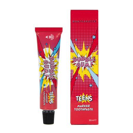 Зубная паста — маркер BUBBLE GUM Montcarotte. САМЫЙ востребованный продукт для улучшения навыков гигиены полости рта у подростков и взрослых людей. Уникальный состав, который не имеет аналогов на рынке! Бунтарский дух, стремление к самостоятельности и независимости выбора образа жизни и питания — особенности подросткового периода, которые НЕ лучшим образом сказываются на мотивации к безупречной гигиене полости рта. Мы много наблюдали за подростками и точно знаем, как привлечь внимание молодых людей к гигиене полости рта. А еще учли все особенности здоровья, характера, моды и выпустили коллекцию средств для ухода за полостью рта MONTCAROTTE TEENS! Паста — маркер разработана специально как ШАГ НОМЕР 1 для идентификации зубного налета и ШАГ НОМЕР 2 для очищения и защиты зубов от кариеса. Индикатор в пасте окрашивает белковый след в налете, маркируя налет на зубах в розовый цвет во время чистки зубов, указывая ГДЕ ИМЕННО необходимо больше уделять внимания и тщательно чистить зубы. В течение первых трех минут чистки интенсивность цвета пасты изменяется, становится светлее, а еще через 10 минут нейтрализуется щелочью слюны. Паста — маркер вызывает временное окрашивание мягких тканей полости рта. Рекомендуем применять в вечернее время и/или учитывать момент «окрашенного» языка. Зубная паста — маркет является обучающим гигиене полости рта продуктом, учит равномерно очищать поверхность зубов, обращать внимание на труднодоступные места. Особенно рекомендуется пациентам в период ортодонтического лечения, детям для обучения гигиене полости рта.