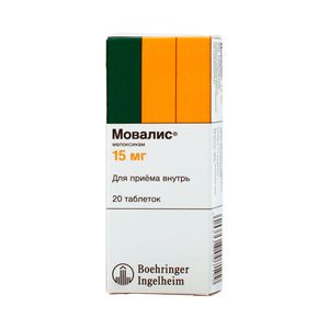 Показания к применениюСимптоматическое лечение:— остеоартрит (артроз, дегенеративные заболевания суставов), в т.ч. с болевым компонентом;— ревматоидный артрит;— анкилозирующий спондилит;— другие воспалительные и дегенеративные заболевания костно-мышечной системы, такие как артропатии, дорсопатии (например, ишиас, боль внизу спины, плечевой периартрит), сопровождающиеся болью.Применение при беременности и кормлении грудьюПрименение препарата Мовалис противопоказано при беременности. Известно, что НПВП проникают в грудное молоко, поэтому применение препарата Мовалис в период кормления грудью противопоказано. Как препарат, ингибирующий синтез циклооксигеназы/простагландина, Мовалис может оказывать влияние на фертильность, и поэтому не рекомендуется женщинам, планирующим беременность. Мелоксикам может приводить к задержке овуляции. В связи с этим у женщин, имеющих проблемы с зачатием и проходящим обследование по поводу подобных проблем, рекомендуется отмена приема препарата Мовалис.Противопоказания— полное или неполное сочетание бронхиальной астмы, рецидивирующего полипоза носа и околоносовых пазух, ангионевротического отека или крапивницы, вызванных непереносимостью ацетилсалициловой кислоты или других НПВП (в т.ч. в анамнезе) из-за существующей вероятности перекрестной чувствительности;— эрозивно-язвенные поражения желудка и двенадцатиперстной кишки в стадии обострения или недавно перенесенные;— воспалительные заболевания кишечника (болезнь Крона или язвенный колит в стадии обострения);— печеночная недостаточность тяжелой степени;— почечная недостаточность тяжелой степени (если не проводится гемодиализ, КК <30 мл/мин, а также при подтвержденной гиперкалиемии);— прогрессирующее заболевание почек;— активное желудочно-кишечное кровотечение, недавно перенесенное цереброваскулярное кровотечение или установленный диагноз заболеваний свертывающей системы крови;— выраженная неконтролируемая сердечная недостаточность;— терапия периоперационных болей при проведении шунтирования коронарных артерий;— беременность;— период лактации (грудного вскармливания);— детский возраст до 12 лет;— редкая наследственная непереносимость галактозы (в максимальной суточной дозе препарата с дозировкой мелоксикама 7.5 мг и 15 мг содержится 47 мг и 20 мг лактозы соответственно);— повышенная чувствительность к активному веществу или вспомогательным компонентам препарата.Состав1 таблетка содержитАктивное вещество: мелоксикам — 15,0 мгВспомогательные вещества: натрия цитрата дигидрат — 15 мг (30 мг), лактозы моногидрат- 23,5 мг (20 мг), целлюлоза микрокристаллическая — 102 мг (87,3 мг), повидон К25 — 10,5 мг (9 мг), кремния диоксид коллоидный — 3,5 мг (3 мг), кросповидон — 16,3 мг (14 мг), магния стеарат — 1,7 мг.