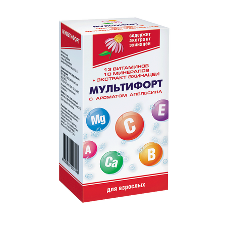 Комбинированный витаминно-минеральный комплекс с экстрактом эхинацеи. Это сбалансированный комплекс из 13 витаминов, 10 минералов и растительного экстракта эхинацеи в шипучей таблетке для взрослых. Рекомендуется для защиты организма от простудных заболеваний, восстановления сил после болезни и в качестве дополнительного источника энергии. В составе витаминно-минерального комплекса оганические композиции минеральных солей, которые снижают вероятность побочных действий, таких как аллергические реакции, тошнота, рвота, диарея.