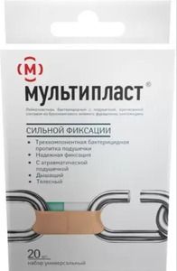 Лейкопластырь бактерицидный «Мультипласт»® по ТУ 9393-044-00480520-2011Лейкопластырь Мультипласт — удобный пластырь для всей семьи: самые популярные формы и размеры позволяют использовать один набор в разных ситуациях.Лейкопластырь представляет собой комбинированное изделие, включающее фиксирующую часть в виде подложки на основе ткани хлопчатобумажной ткани, с липким клеевым слоем, подушечки из нетканого полотна, пропитанной раствором антисептиков (составом из бриллиантового зеленого, фурацилина и синтомицина), защитного покрытия из материала силиконизированного антиадгезионного.Цвет: телесныйЛейкопластырь Мультипласт® бактерицидный сильной фиксацииТрехкомпонентная пропитка подушечки (бриллиантовый зеленый, фурацилин. синтомицин) гарантирует бактерицидный эффект и профилактику вторичного инфицированияПодушечка, покрытая атравматическим слоем, обеспечивает безболезненное снятие пластыря с раныОснова: натуральная дышащая хлопчатобумажная ткань.Проверенная временем надежная клеящая композиция обеспечивает сильную фиксацию пластыряОписание принципа действия:Неинвазивное сцепление с поверхностью кожи с целью фиксации подушечки, пропитанной антисептиками, на поврежденных участках кожи, их дезинфекции и ускорения заживления.Область примененияНаружное антисептическое перевязочное средство.Условия примененияВ стационарных, амбулаторных лечебно — профилактических медицинских учреждениях, в полевых и домашних условиях.Бактерицидный лейкопластырь благодаря антибактериальным и дезинфицирующим свойствам ускоряет процессы заживления, препятствует вторичному инфицированию и маскирует рану.