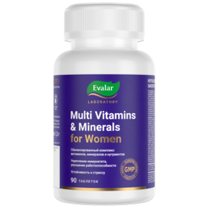 Витаминный комплекс для женщин от Evalar Laboratory – это новый подход к заботе о женской красоте, здоровье и бережному отношению к себе. 13 витаминов и 10 минералов для женских красоты и здоровья, «компоненты красоты»: гиалуроновая кислота, керамиды и кератин антиоксиданты растительные экстракты и компоненты для поддержания женского здоровья.Инновационный комплекс с биоактивными фитокомпонентами для женщин от Evalar Laboratory способствует: сохранению естественной красоты кожи здоровью волос и ногтей профилактике возрастных изменений защите организма от воздействия окислительного стресса