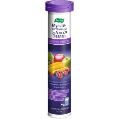 Мультивитамины от А до Zn Эвалар таблетки шипучие 5г 15шт