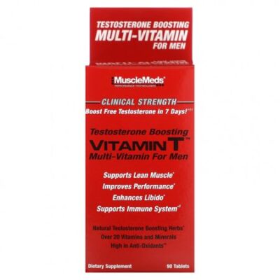 Описание Производительные технологииКлинически доказанная эффективностьПолучите бесплатный тестостерон за 7 дней! † ¹Поддержка сухой мышечной массыПовышает производительностьПовышает либидоПоддерживает иммунную систему¹Натуральные травы, повышающие уровень тестостеронаБолее 20 витаминов и минераловВысокое содержание антиоксидантов²Пищевая добавка500 мг пажитникаЯкорцев 200 мг200 мг цитрата бора100 мг лонгджекаВитамин Т — мультивитаминный комплекс для каждого мужчиныСодержит мультивитамины с улучшенной поддержкой тестостерона!Ни один мужчина не должен игнорировать важность правильного питания и добавок для поддержания здорового уровня тестостерона для оптимальной мужской работоспособности. ВИТАМИН T — это полноценный мультивитамин премиального качества, специально разработанный для мужчин с клинически изученными травами и минералами, такими как цитрат бора, пажитник, якорцы и лонгджек, которые помогают повысить уровень тестостерона и улучшить физическую и сексуальную работоспособность. Витамин T также содержит мощную дозу антиоксидантов² и полный спектр витаминов и минералов для поддержки иммунной системы и оптимального мужского здоровья¹.¹В пределах нормы²Витамины C и E† J Trace Elem Med Biol, 2011 Рекомендации по применению Принимать по 3 таблетки один раз в день во время еды, запивая водой. Ингредиенты Микрокристаллическая целлюлоза, стеариновая кислота, оболочка таблетки (гипромеллоза, диоксид титана, макрогол, гидроксипропилцеллюлоза), кроскармеллоза натрия, диоксид кремния, стеарат магния. Предупреждения Перед использованием этого продукта проконсультируйтесь с врачом. Не принимайте этот продукт, если у вас есть заболевания, включая, помимо прочего, диабет, болезни сердца, психологические расстройства, гипертрофию простаты или гормональные нарушения. Проконсультируйтесь с врачом, если вы принимаете антидепрессанты, ингибиторы МАО или другие рецептурные препараты. Этот продукт не следует использовать женщинам и мужчинам младше 18 лет. Не предназначено для беременных и кормящих женщин.Хранить в недоступном для детей месте.Хранить в сухом и прохладном месте.Беречь от воздействия тепла, света и влаги.Не следует приобретать продукт, если защитная пленка повреждена. Пищевая ценностьРазмер порции: 3 таблеткиПорций в упаковке: 30 Количество в 1 порции% от суточной нормыВитамин A (в виде ретинилпальмитата)900 мкг RAE100%Витамин C (в виде аскорбиновой кислоты)200 мг222%Витамин D (в виде холекальциферола)50 мкг250%Витамин E (в виде сукцината d-альфа-токоферила)30 мг200%Витамин K (в виде фитонадиона)120 мкг100%Тиамин (в виде мононитрата тиамина)25 мг2083%Рибофлавин25 мг1923%Ниацин (в виде никотинамида)50 мг NE313%Витамин B6 (в виде пиридоксина гидрохлорида)75 мг4412%Фолат (содержит 400 мкг фолиевой кислоты)667 мкг DFE167%Витамин В12 (в виде цианокобаламина)75 мкг3125%Биотин40 мкг133%Пантотеновая кислота (в виде d-пантотената кальция)20 мг400%Холин (в виде холина битартрата)10 мг<, 2%Кальций (в виде карбоната кальция)450…