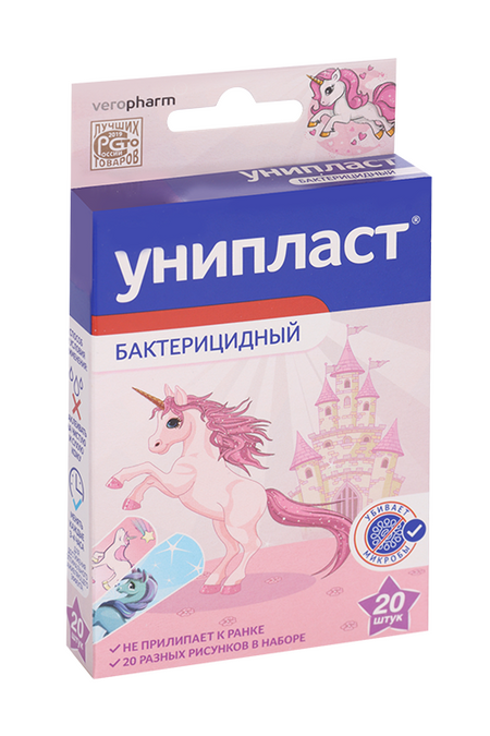 Набор лейкопластырей Унипласт Единорог бактерицид, 20 шт