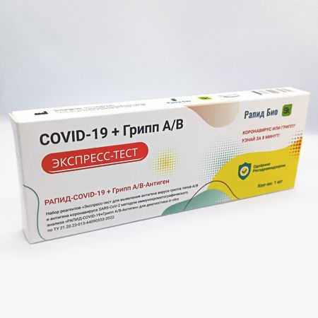 Набор реагентов Экспресс-тест для выявл.антигена вируса гриппа типов А В и антигена коронавируса SARS-CoV-2 методом иммунохром. анализа РАПИД-COVID-19+Грипп А В-Антиген для диагностики in vitro