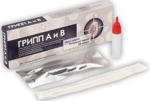Определение основано на принципе иммунохроматографического анализа. Анализируемый образец абсорбируется поглощающим участком тест-полоски экспресс-теста. При наличии в образце антигенов возбудителей вируса гриппа А и/или вируса гриппа В они вступают в реакцию с меченным окрашенным коньюгатом антител с образованием окрашенного комплекса антиген – антитело. Сформировавшийся комплекс связывается антителами, иммобилизированными на мембране, образуя комплекс антиген-антитело-антиген и проявляется в виде окрашенной линии (Т) в тестовой зоне (аналитическая линия «Т»).В контрольной зоне тест-полоски специфический окрашенный иммунный комплекс образуется независимо от наличия в тестируемом биологическом материале антигенов вируса гриппа А и/или вируса гриппа В (контрольная линия «С»).Если в анализируемом образце присутствует вирус гриппа А и вирус гриппа В, на тест-полоске экспресс-теста образуются три параллельные окрашенные линии (две линии аналитические, обозначенные буквой Т (Т1 и Т2), и контрольная, обозначенная буквой С), что указывает на положительный результат анализа по вирусам обоих типов. В случае отсутствия в анализируемом образце вируса гриппа А и вируса гриппа В на тест-полоске образуется одна контрольная линия (С), что указывает на отрицательный результат анализа по вирусам обоих типов.ПреимуществаЧувствительность и специфичность 100%Достоверный результат уже через 10 минутПростота использования: все необходимые компоненты в составе набораБольшой срок годности: 24 месяца без снижения аналитических характеристикНе требует специальных условий хранения (2-25°С)Технические характеристикиОбразец: Мазок со стенок носового прохода.Время считывания результатов теста: через 10 минут, но не более 12 минут после нанесения биологического образца (мазок со стенок носового прохода).pH буферного раствора: 7,5 ± 0,3Аналитические характеристикиПредел обнаружения9,4 нг/мл – для вируса гриппа А18,8 нг/мл – для вируса гриппа ВЧувствительность и специфичность — 100%.Стабильность изделияСрок хранения изделия при температуре 2-30°C в заводской упаковке.Изделие стабильно в течение 2 часов после вскрытия герметичной индивидуальной упаковки.