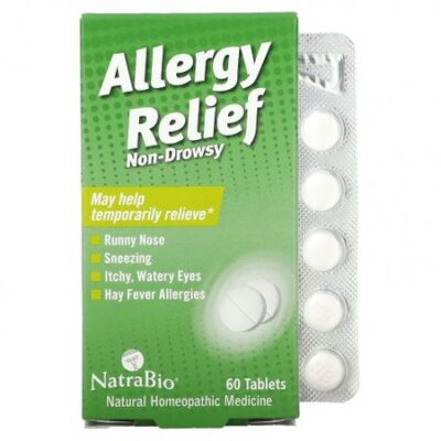 Активные ингредиенты Цель Echinacea angustifolia 4X, 12X, 20X, 30X аллергические реакции, аллергии Ignatia amara 6X кашель, затруднение дыхания Lycopodium clavatum 6X головная боль, чихание, водянистые глаза, насморк Сера 6X, 12X, 20X, 30X аллергические реакции, сыпь на коже Thuja occidentalis 6X симптомы аллергии, насморк, воспаление Ledum palustre 8X затрудненное дыхание, сыпь на коже Phosphorus 8X симптомы аллергии Antimonium Crudum 12X респираторные симптомы, сыпь на коже, зуд Гистамин гидрохлорид 12X аллергические реакции, аллергии Селен 12X насморк, воспаление, зуд Неактивные ингредиенты: целлюлоза, декстроза, лактоза, стеарат магния Натуральный препаратУлучшенная формулаНе вызывает сонливостиНе вызывает привыканияУдобные быстрорастворимые таблеткиМожет временно избавить от следующих симптомов НасморкЧиханиеЗуд в глазах и слезотечениеАллергия на пыльцуРасстройство желудкаКомпания NatraBio® занимается выпуском инновационных натуральных продуктов для здоровья, которые разрабатываются и производятся в соответствии с фармацевтическими стандартами. На протяжении более 30 лет компания NatraBio® остается лидером в области инноваций и исследований натуральных препаратов, уделяя особое внимание качеству продукции и удовлетворенности покупателей.