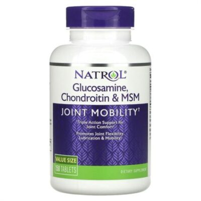 Сведения о добавке Размер порции: 1 таблетка Количество порций в упаковке: 150 Состав порции % от суточной нормы Гидрохлорид глюкозамина 500 мг * Сульфат хондроитина 400 мг * Метилсульфонилметан (МСМ) 83 мг * *Суточная норма не установлена. Подвижность суставов Тройная поддержка для комфорта суставов Повышает гибкость и подвижность суставов, улучшает их смазку Выгодная упаковка Пищевая добавкаГлюкозамин, хондроитин и MSM от Natrol: Тройная поддержка для комфорта суставов. Глюкозамин помогает поддерживать здоровье хрящевой ткани. Хондроитин способствует выработке смазывающей жидкости для суставов. МСМ помогает поддерживать эластичность тканей суставов и поддерживает их прочность.